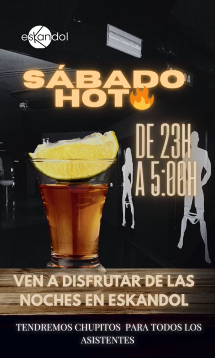 ven a disfrutar de las noches mas atrevidas de eskandol,este sabado ven a probar nuestro famoso chupito chupilove musica,ambiente liberal y mucha actitud