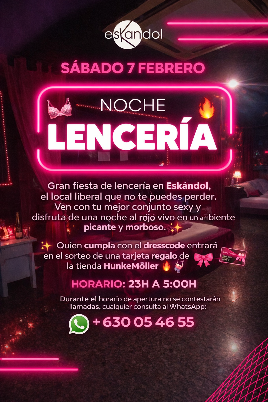 ✨🔥 NOCHE DE LENCERÍA EN ESKANDOL 🔥✨ Este sábado 7 de febrero prepárate para una noche ardiente, provocadora y sin tabúes en ESKANDOL, tu local liberal de referencia 😈💃 👙 Saca tu lado más sexy y ven con tu mejor conjunto de lencería. 🎁 Quien cumpla con el dresscode entrará automáticamente en el sorteo de […]